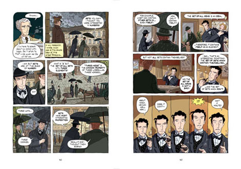 The creators of Logicomix introduce us to Bertrand Russell in 1939 during one of his public lectures. Russell explores the question, "What is logic?" by telling the story of "one of [logic’s] most ardent fans"--himself. The panels that follow (click each image to see the full page) reimagine the life of a brilliant young man with a passion for mathematics.