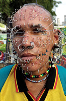 Check out my pictures of a young woman whom I photographed in Cuba, a Buddhist monk whom I photographed in Cambodia, and a man with face piercing whom I photographed in Cuba. While photographing one subject, I was beaming with joy. For another, I was trying to show an honest feeling of respect. And for another, I was expressing the feeling of, “Man, you look totally awesome.” I don’t have to match the photos with the feeling for you. See! The camera does, indeed, look both ways. Speaking of photo philosophies, if you check out the table of contents, you’ll see that Photo Philosophies is the longest section in this book. That’s because getting a good picture of a person goes way beyond technique. When it comes to photographing a person, you really need to think before you shoot, and that section offers a lot of food for thought. So what about Photoshop? Well, all of the pictures in this book have been enhanced to some degree, even it was only in sharpening, cropping and/or adjusting the brightness, contrast and color of an image. This is not a Photoshop book. However, because Photoshop can help you get a more dramatic, dynamic and artistic images, I’ve included a section at the end of this book that features my favorite Photoshop enhancements when it comes to people pictures.